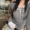Korean Series Contrast Color Knit T-shirt Women Autumn 2024 New Long Sleeve Inner Wear Slim Fit Short Round Neck Base Top