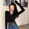 Evropská a americká Y2K sexy sexy dívka s dlouhým rukávem, krátký černý kardigan design sense dámský pletený top