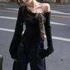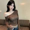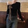 American Retro Pure Desire Blouse Shoulder Leopard-print Base T-shirt Autumn and Winter New Design Slim-fitting Hot Girl Long-sleeved Top Tees