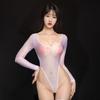 Ultra tenké průsvitné lesklé body Vysoce střižená tanga Trikotové body Ženy Sexy spodní prádlo Hedvábně hladké porno kombinézy bez Crothless