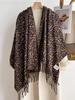 European and American Style Women's Scarf Fashion Leopard Shawl Autumn and Winter Pashmina Large Split Cape Thicken Warm Cloak