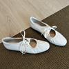 fashion Soft Leather Casual Women Ballet Flats Lace Up Fashion Design White Black Female Mary Jane Shoes New 2024 Autumn Footwear