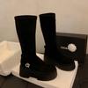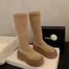 Strečové dámské kozačky nad koleno Módní nazouvací boty Podzim Zima Platformové baleríny Dámské rytířské dlouhé kotníkové boty