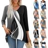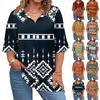 Dámský módní ležérní pulovr se 4/3 rukávy s potištěným výstřihem do V