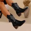 Dámské kozačky do poloviny lýtek Kovbojské boty Dívčí boty na hrubém podpatku Retro punkové westernové boty Vyšívané boty Kožené kozačky do poloviny lýtek pro ženy