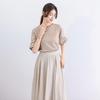 Cotton Blends T-shirt for Women Summer Japanese Solid Color Round Neck Flared Sleeve Basic Elegant Top