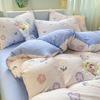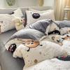 Nordická jednoduchá pruhovaná malá černá kočka praná bavlna čtyřdílná sada kreslený povlak na přikrývku prostěradlo studentská kolej třídílná sada