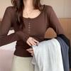 Hot Girl Krátké tričko s dlouhým rukávem Dámské Podzimní Novinka Cardigan Top Zeštíhlující Tenká košile s kulatým výstřihem Všestranná košile se spodním okrajem