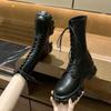 fashion Platform Mid-calf Boots Designer Shoes Women 2024 Autumn Thick Bottom Warm Chunky Heel Shoes Woman Lace Up High Botas De Mujer