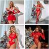 Vánoční kostýmy Dámské Krajka Hollow Out Erotické šaty BabyDoll Body Spodní prádlo Sexy Otevřené spodní prádlo bez rozkroku