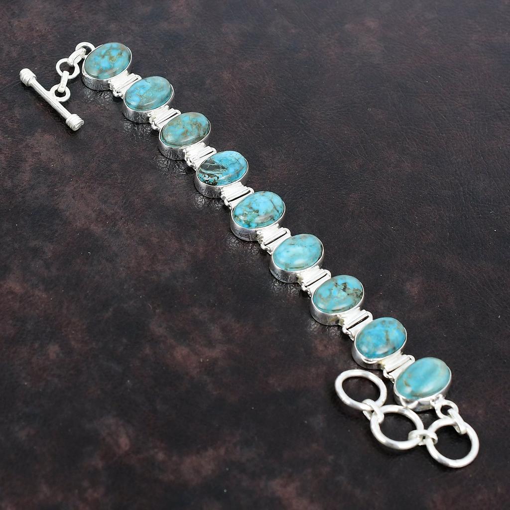Náramek s tibetským tyrkysem, náramek ze sterlingového stříbra 925, náramek s nastavitelným řetízkem, náramek s originálním drahokamem, ručně vyráběné šperky, dárky pro něj