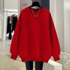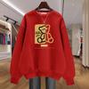 Year of the Dragon roztomilý styl sametová mikina dámská bez kapuce ins nový podzim a zima nový rok červené zvíře rok top oblečení