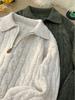 ZAFUL Men's Daily Cable Knit Jacquard Zip Placket Stand Collar Pullover Sweatshirt
