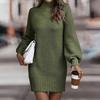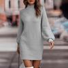Podzimní a zimní jednobarevné dámské šaty s dlouhým rukávem, svetr s vysokým výstřihem