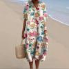 Tyto dámské šaty střední délky jsou vyrobeny z měkké a prodyšné polyesterové tkaniny, která zajišťuje lehké a pohodlné nošení. Volná silueta do A vyzařuje ležérní a svobodomyslný bohémský styl, ideální pro ty, kteří oceňují pohodlí a individualitu. Tyto šaty s retro potiskem a lichotivým designem s výstřihem do V dodají vašemu vzhledu elegantní a okouzlující nádech.