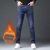 Spring And Autumn Winter Men'S Plush/Thin Jeans Versatile Outerwear Slim Straight Tube Trendy Brand High End Long Pants