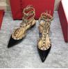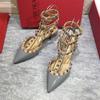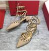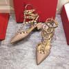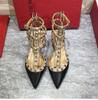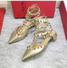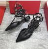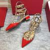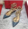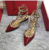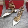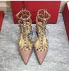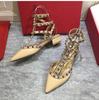 Luxusní značkové boty s nýty na nízkém podpatku pro ženy 2024 Nové boty s páskem a přezkou na silném podpatku s lodičkami špičatými z pravé kůže Sandály 41
