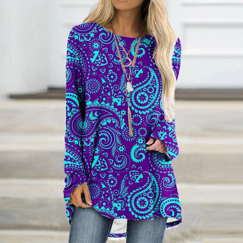 Paisley Pattern T-Shirts Boho 3D Print Women Fashion Streetwear Long Sleeve T Shirt Oversized Tunic Tees Tops Female Clothing