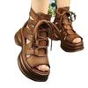 Roman Thick Bottom Fish Mouth Dámské boty 2024 Nové měkké kožené retro duté prodyšné vysoké top Cool boty sandály na platformě