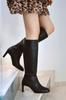 Women Modern Stylish Fashion Boots Boots Faux Leather Kinda Heeled Knee High Blunt Toe Zippered Matte Leather Boots