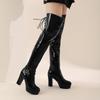 Dámské boty na vysokém podpatku podzimní a zimní klasické voděodolné platformové silný podpatek plus kozačky nad koleno