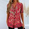 QICED Spring Summer Women's Cardigan Ethnic Print Short-sleeved T-shirt Woman