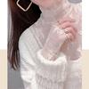 Autumn Knitwear Women's Lace Yarn Sleeves Half High Collar Hoodie Fashionable Western Style Sweater Women's Bottom Shirts