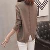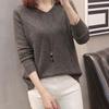 V-neck pullover sweater women's back butto stylish slimming knitted sweater solid color base outerwear Sweaters women’s