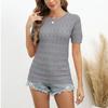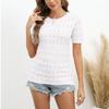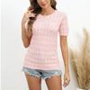 Dámský podzimní a zimní jednobarevný pletený volný svetr s kulatým výstřihem a krátkým rukávem