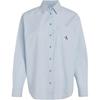Calvin Klein Retro nápis nášivka náprsní kapsa pruhovaná volná košile s krátkým rukávem pánská košile modrá J325769