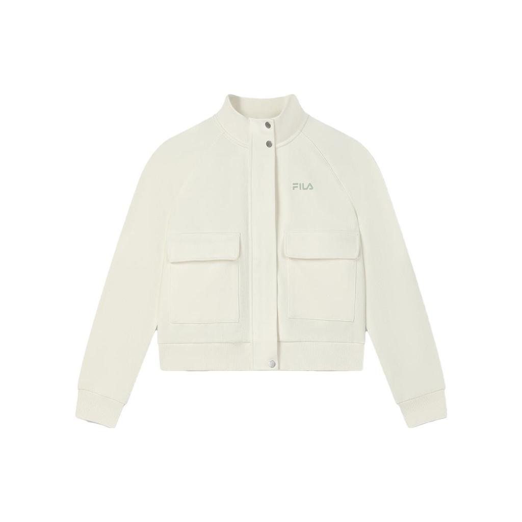 Fila Solid Color Casual Knit Jacket Women Jackets Ceramic-White F11W348501F-IV