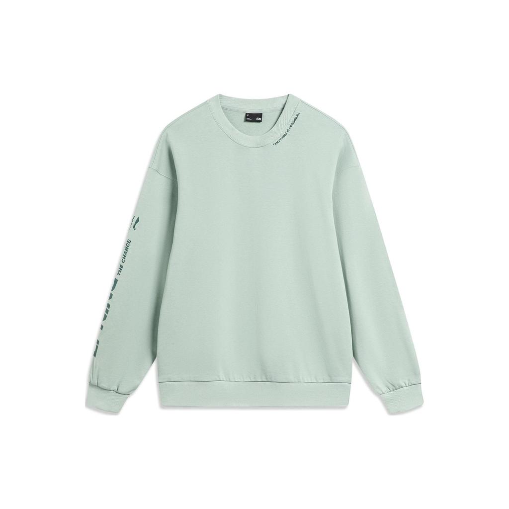 Li Ning Sports Lifestyle Series Letter Print Casual Pullover Long Sleeve Sweatshirt Unisex sweatshirt Gray-Mist-Green AWDTB37-3