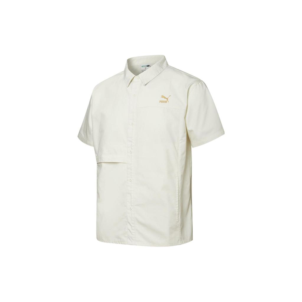 Puma Lifestyle Series Brand Logo Solid Color Casual Sports Work Style Short Sleeve Shirt Men shirts Beige 533739-55