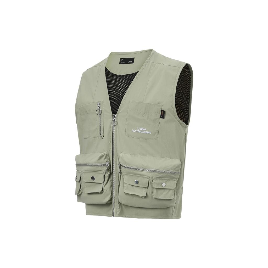 Li Ning Solid Color V-Neck Loose Work Vest Men Vests Yew-Green AMDT003-2