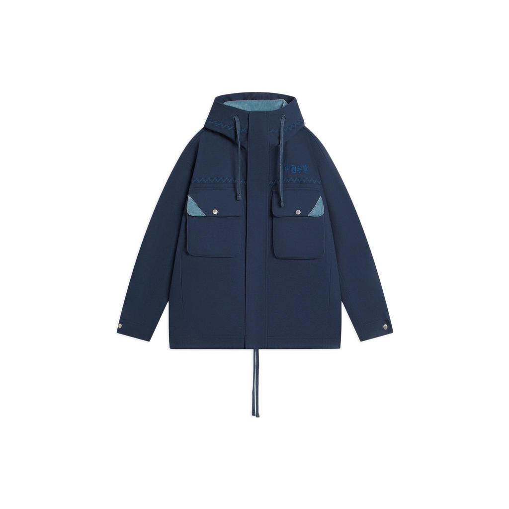 Li Ning China Series Solid Color Logo Embroidered Hooded Drawstring Jacket Unisex Jacket Dark-Indigo AFDSB71-4