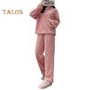 Tento stylový dámský pyžamový set je vyroben ze směsi polyesteru a spandexu, což zajišťuje vysoce kvalitní látku, která je měkká a jemná na pokožce.. Materiál je prodyšný, pohodlný a nabízí vynikající udržení tepla, aniž by byl průhledný nebo způsoboval pocení. Dvoudílné domácí pyžamo má módní a klasický design, který je jemný a měkký na dotek.