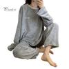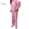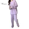 Dámské dvoudílné domácí pyžamo s módním a klasickým designem. Top je navržen s kulatým výstřihem, zatímco kalhoty mají elastický pas, který zajišťuje pohodlí bez skřípnutí pokožky. Tento pyžamový set s dlouhým rukávem je všestranný a dokáže uspokojit vaše každodenní potřeby a nabízí volný střih, který doplňuje různé tvary těla a věkové kategorie.. Jednoduchá jednobarevná souprava tohoto topu a kalhot vyzařuje eleganci a je vyrobena z vysoce kvalitních materiálů pro větší pohodlí.