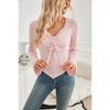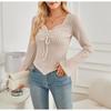Podzimní dámský top nadměrné velikosti s rozšířenými rukávy, výstřihem do V, stahovací šňůrkou, dlouhým rukávem a proužkem v podpaží.
