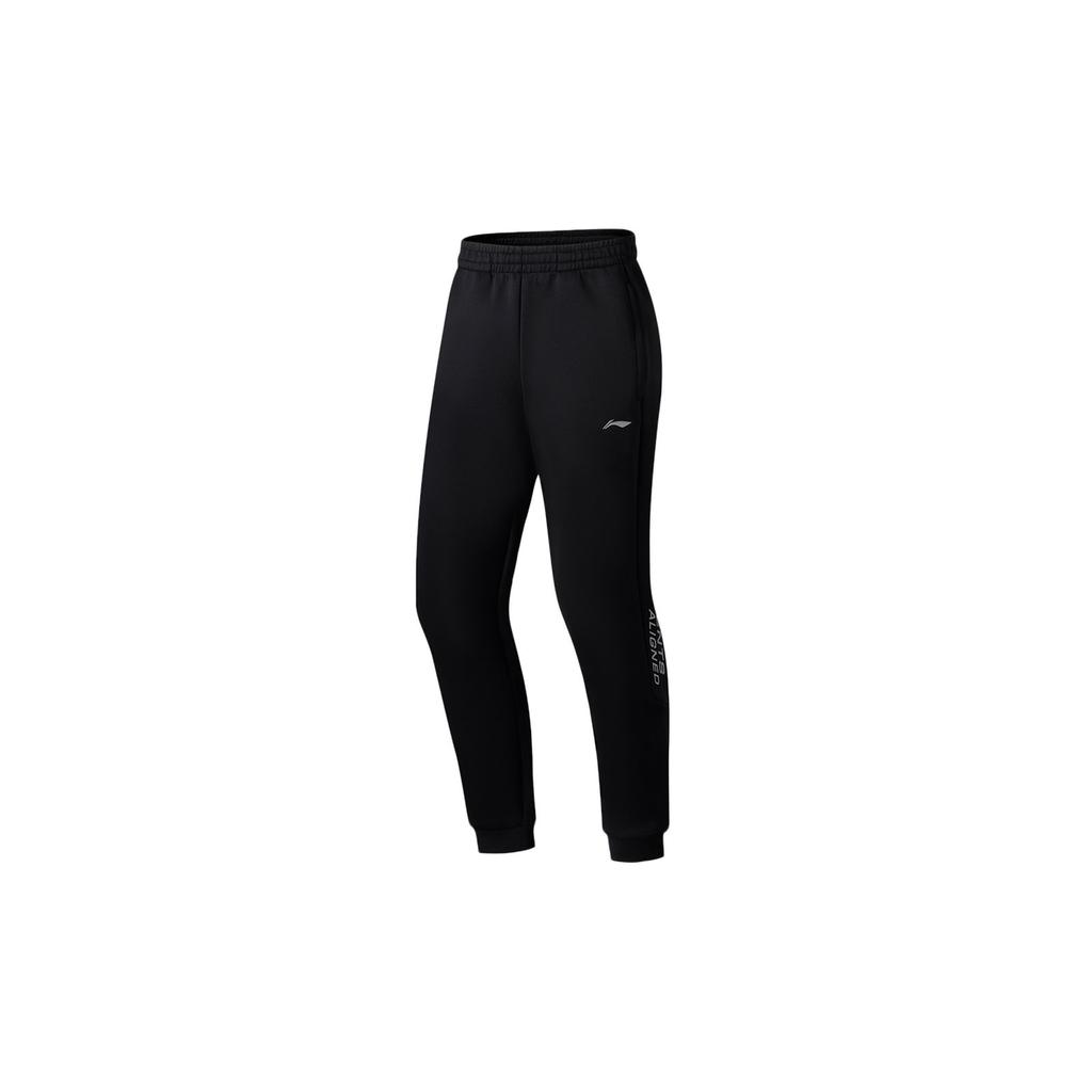 Li-Ning Fitness Series Solid Color Letter Logo Print Cuffed Knitted Sports Pants Men bottoms Black AKLT051-1