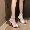 Dámské sandály na vysokém podpatku s kovovými špičkami, duté sexy sandály, letní 2024, nové designové společenské lodičky, otevřená špička, Zapatillas Mujer