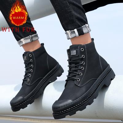 Classic black men's boots Casual minimalist design style Daily office outdoor walking Motorcycle men's leather shoes Size-46