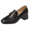 Elegant Womens High Heels with Metal Buckle Loafers Comfortable PU Mid-heel Womens Loafers Casual British Style Oxford Shoes