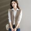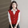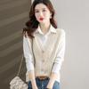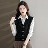 Dámská elegantní polyesterová pletená vesta | Svetrová vesta s copánkovým vzorem a výstřihem do V | Jednobarevné pletené oblečení bez rukávů | Módní top pro vrstvení na podzim/zimu