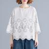 ZANZEA Women Summer Round Neck 3/4 Sleeve Printed Wave Edge Blouses
