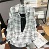Dámská tenká kostkovaná košile, ležérní halenka s dlouhým rukávem, ochrana proti slunci, šifonový kabát, dámský kardigan s knoflíky, univerzální košile Y2k, topy