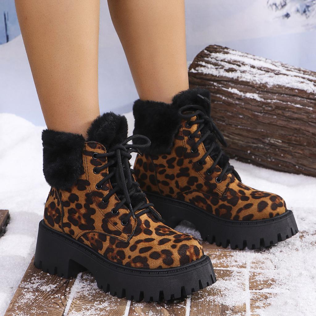 fashion Leopard Print Chunky Platform Ankle Boots for Women 2024 Winter Fashion Plush Warm Snow Boots Woman Thick Sole Fur Cotton Shoes