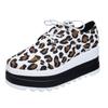 fashion Women's Round Toe Leopard Print Oxfords Lace Up Chunky Platform Casual Shoes Woman Thick Bottom Non Slip Trainers Plus Size 43