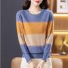 Striped Thin Knit Sweater Top Autumn Women's Color-blocked Crew Neck Pullover Sweater Women's Base Layer
