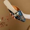 fashion 2024 New Summer Women's Mules Silk Ethnic Style Baotou Low Heel Slippers Square Toe Sandals High Shoes Women's Shoes Zapatos