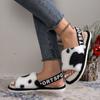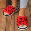 Leopard Print Plush Flat Slippers, Open Toed Elastic Band Slippers, Comfortable and Warm Home Slippers Sandals